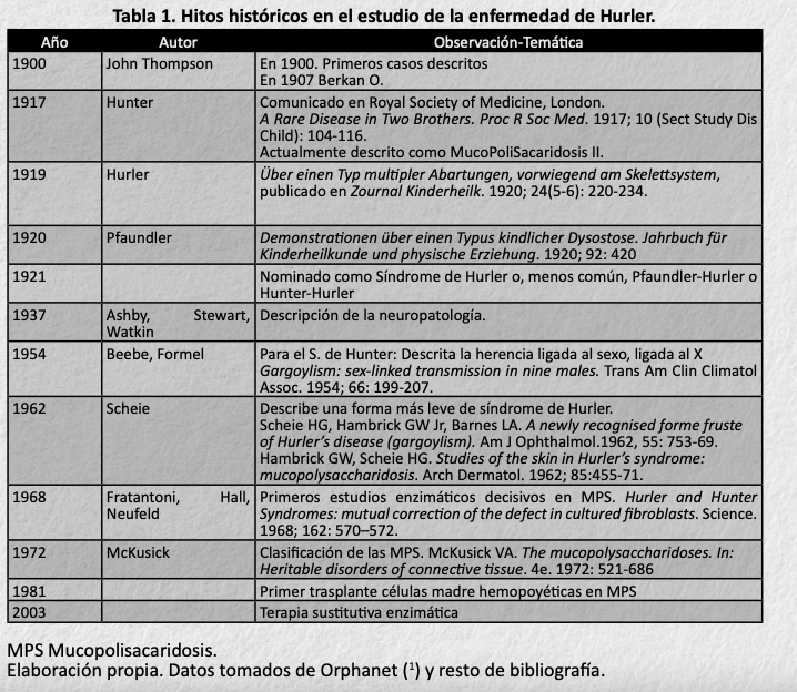 Tabla 1. Hitos históricos en el estudio de la enfermedad de Hurler.
