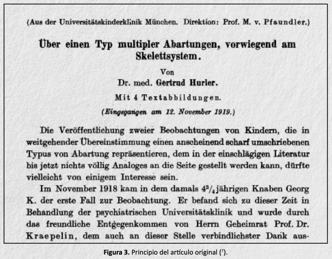 Hurler (1904-1983) fue una pediatra austríaca-alemana que describió en 1919 los dos primeros casos de Mucopolisacaridosis 1.