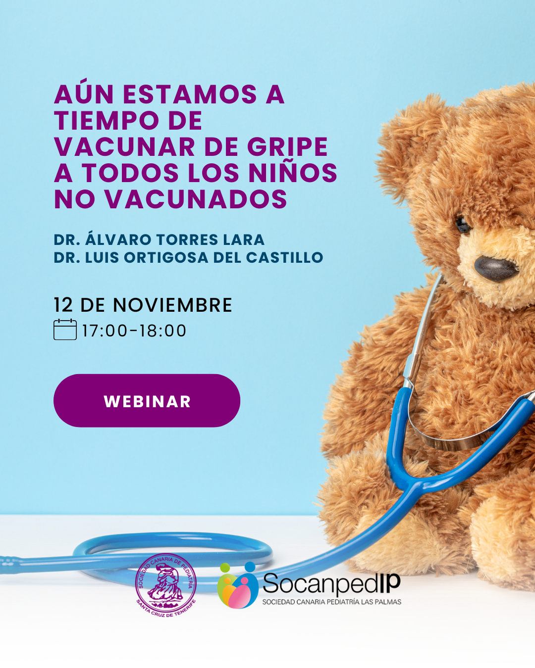 Webinar “Aún estamos a tiempo de vacunar de gripe a todos los niños no vacunados”, un encuentro virtual que busca reforzar la importancia de la vacunación antigripal infantil como herramienta esencial de prevención. Fecha: martes, 12 de noviembre de 2025Hora: 17:00 a 18:00 h (hora oficial de Canarias)Modalidad: online Este webinar contará con la participación de dos reconocidos expertos en el ámbito de la vacunología: Dr. Álvaro Torres Lara, responsable de la Unidad de Vigilancia Epidemiológica y Prevención del Servicio Canario de Salud (SCS). Dr. Luis Ortigosa del Castillo, asesor interno del Comité Asesor de Vacunas de la Asociación Española de Pediatría (AEP) y [...]