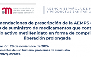 En noviembre de 2024, la Agencia Española de Medicamentos y Productos Sanitarios (AEMPS) emitió recomendaciones clave para paliar los problemas de suministro de medicamentos que contienen metilfenidato en comprimidos de liberación prolongada. Este medicamento, esencial en el tratamiento del Trastorno [...]