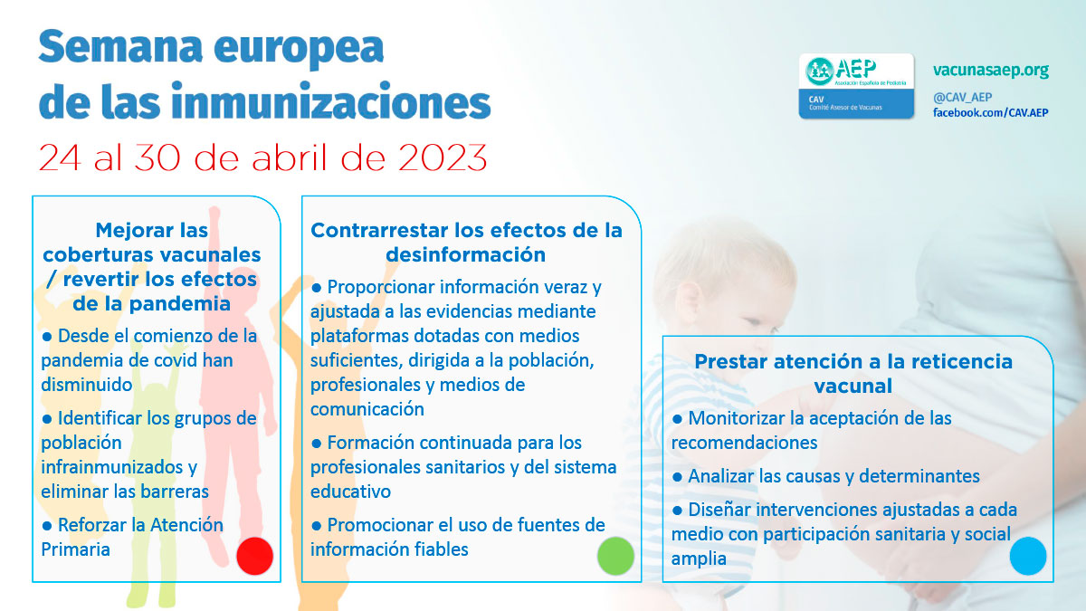 La Asociación Española de Pediatría se suma a la Semana europea de las inmunizaciones 2023 y reitera su compromiso con los objetivos propuestos por la OMS, el ECDC y otras entidades.