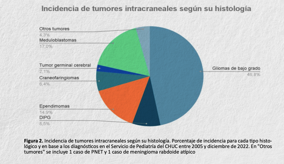 En España, según el Registro Nacional de Tumores Infantiles (RETI) se diagnostican en torno 1.500 casos nuevos de cáncer infantil al año, con una incidencia de 155,5 casos nuevos por millón de niños al año. Los tumores del SNC representan el 22 % del total de tumores en la infancia, siendo la segunda neoplasia más frecuente a esta edad y ocupando el primer lugar entre los tumores sólidos1.
